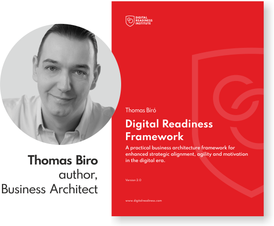 Digital Readiness Framework is a practical business architecture framework for enhanced strategic alignment, agility and motivation in the digital era. There are 31 different building blocks and 14 practices presented. Their interconnection and interdependence, how they fit together as an integrative and holistic system is what makes the concept of digital readiness unique.