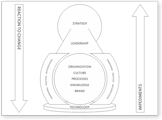 This framework is integrative and holistic. It is integrative because it combines many disciplines and theories in one comprehensible and practical unit, ready to be applied in practice in a relatively short time. It is holistic, because it entwines the entire organization, not just parts of it. This framework is made to drive fundamental change in organizations.