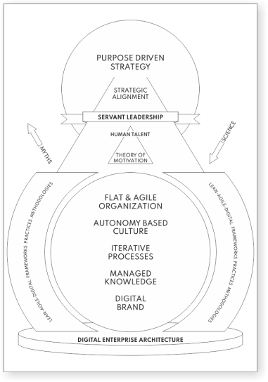 This framework focuses on the mindset and the preparation of leaders. Most transformation programs focus on the mechanics of the digital-agile transformation. Mechanics is easier to sell, but we believe it is the thinking and deep understanding behind the mechanics that really matter. Understanding leads to readiness.